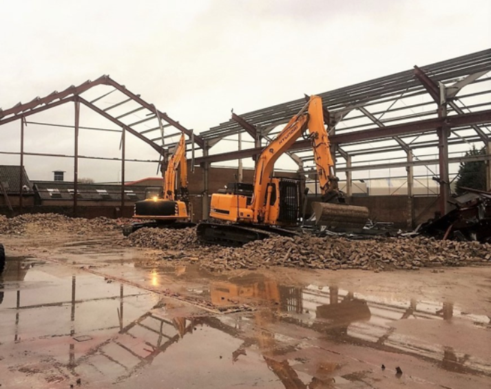 The works consist of complete demolition, including asbestos removal, of the existing steel framed building including ground floor slab and foundations. All suitable materials to be crushed on site to 6f2 for later re-use by others, and all other materials to be removed from site to a licensed facility.